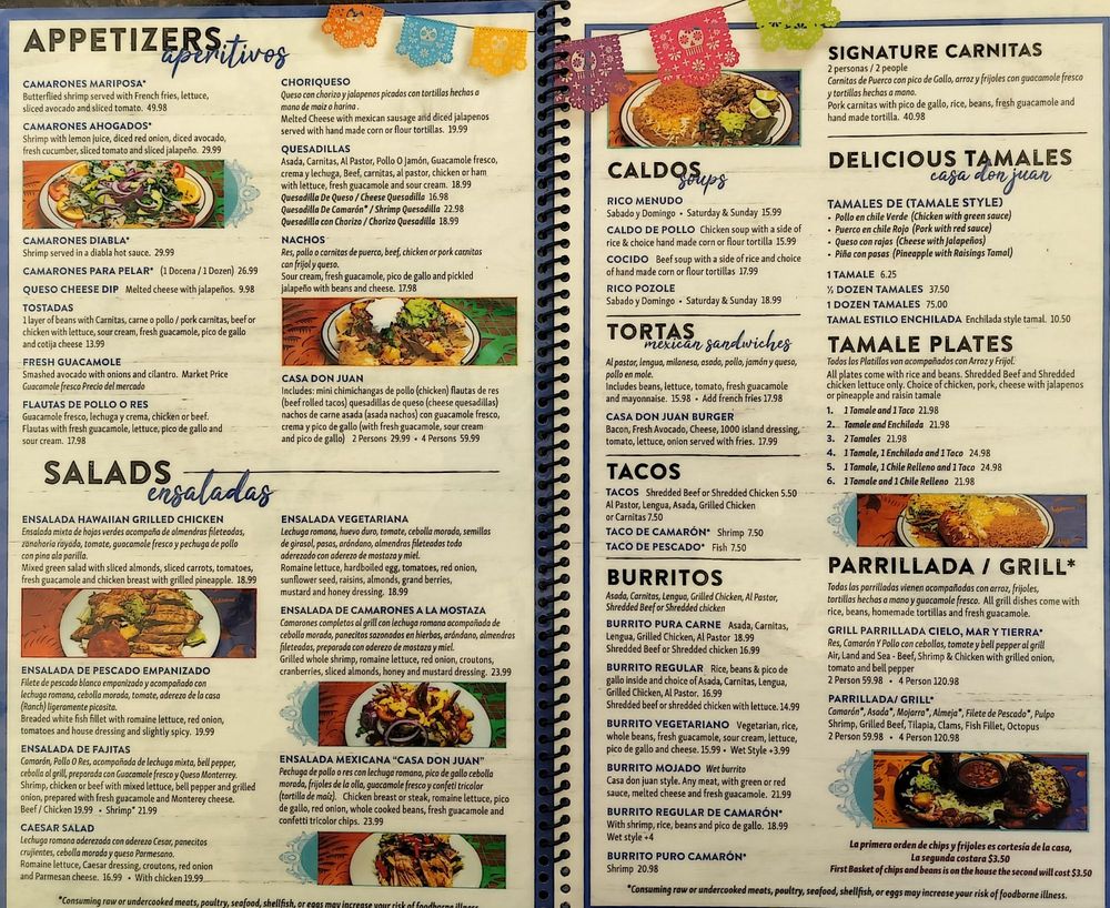 Casa Don Juan is a vibrant Mexican seafood restaurant located in Las Vegas. With a Latinx-owned establishment, they offer a range of vegetarian options and accept various payment methods, including cryptocurrency. Their menu features a variety of delicious dishes such as Bistec con huevos (Steak and eggs) and Camarones diabla (Shrimp in hot sauce). The ambiance is welcoming with colorful decor, and the staff is friendly and attentive. Customers praise the delicious food, especially the homemade tortillas and flavorful salsa. The restaurant provides both indoor and outdoor seating, along with free street parking. Overall, Casa Don Juan is a great spot for a casual breakfast or lunch with great food, excellent service, and a lively atmosphere.